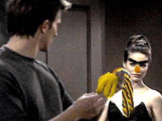 ![]() Elizabert: [evil smile] Well, Jason, I see you have uncovered my little secret... Well, it's true. And now you must die-- a pity really, you could have ben my towel boy. I was once attracted to your strangely puppet-like stare. And you might as well know that I sent Lurny after you with the knife. I control his mind with that red chunk of glass you gave me-- I call it The Vice Princess. [the lights go down and the strains of "The Sesame Street Song" obscure the dying screams of the ill-fated Jason.] |